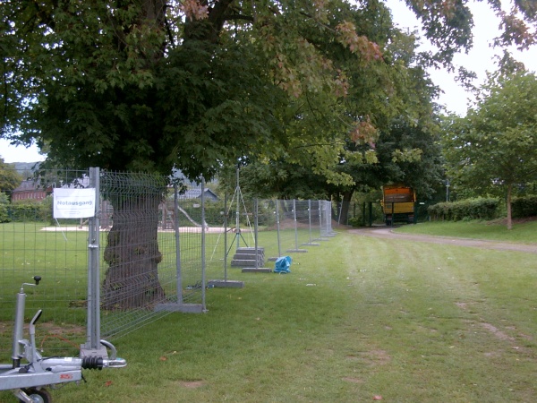 Die robuste, sichere und vielseitig einsetzbaren Zaun-Systeme bieten eine kurzfristige und wirksame Absicherung. Anlieferung erfolgt auf Metallpaletten. Sichtschutz für die Zäune ist in weiß lieferbar.